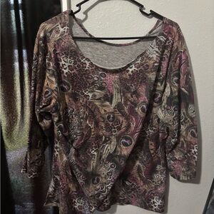 Explore vibrant style with this multicolor patterned top. Perfect for any occasion. Off the shoulder vintage long sleeve.