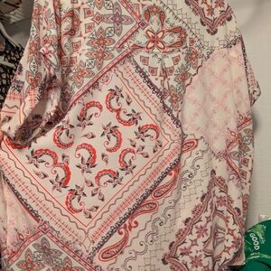 zipper front Maurices top, flowy fabric. hits about mid hip. worn three times