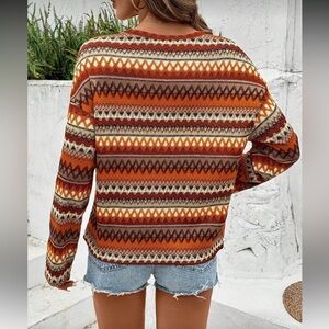 Stay cozy and stylish with this multicolor patterned top. Perfect for any casual outing. 100% polyester