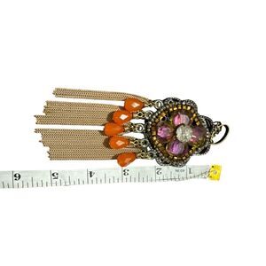 Women's Multicolor Rhinestone Fringed Teardrop Dangle Large Statement Necklace Pendant Boho Western Indie