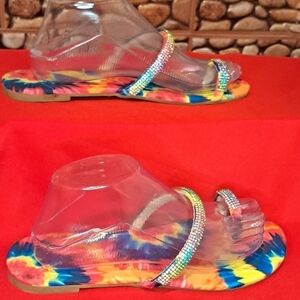 Laguna Tie Dye fabric Toe sandals slides with rhinestones, women's size 9, pre-owned good condition see photos for condition,  no box