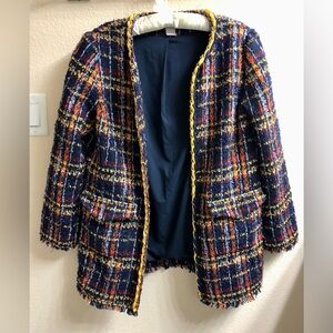 Elevate your style with this chic multicolor tweed jacket. Perfect for any occasion, this jacket features a blend of vibrant colors for a standout look. Talbots blazer size 1 which is medium.