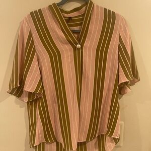 Women's Multicolor V Neck Short Sleeve Striped Outdoor Crop Top Size Medium