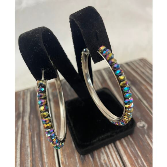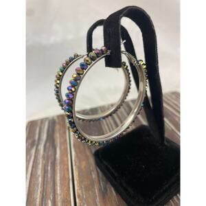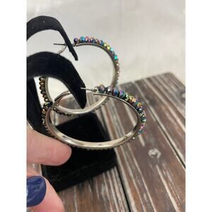 Women's Multicolored Beaded Hoop Earrings GUC Silver