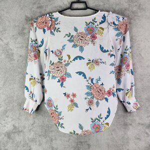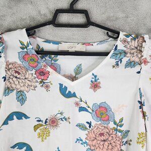 Women's Multicolored LOFT Floral Print Blouse Long Sleeve V Neck Size XSP
