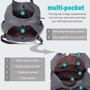 Women's Multi-pocket Shoulder Bag Fashion Cotton Canvas Handbag Tote Purse
