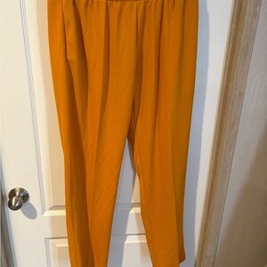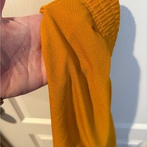 Elevate your style with these chic mustard pants. Perfect for any occasion, they offer both comfort and elegance. Small snag on front of right pant leg.