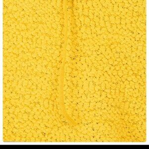 This cozy hooded sweater features a vibrant mustard yellow hue and a soft fuzzy knit texture, offering warmth and style for cooler days.