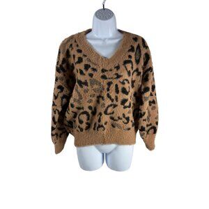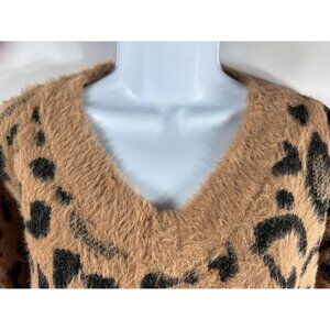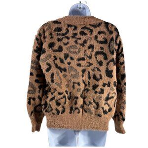 Womens Mystree Fuzzy Animal Cheetah Print Pullover Sweater Cozy Soft Size Small