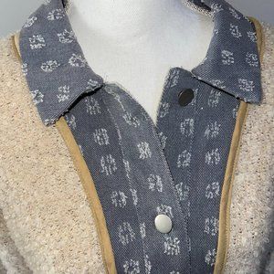 Women's Mystree Wool Blend Denim Trim Sweater with Pockets Size M