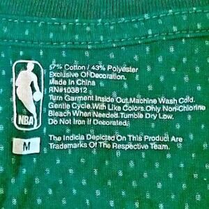 This is a green NBA branded Women's Boston Celtics T-Shirt, size Medium. It has a Polka Dot-like pattern that is supposed to resemble Jersey Holes. The shirt has a V-Neck and fitted shape. No damages or defects. Sold as-is, shipped double-bagged.