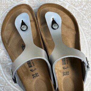 NEW Women's Birkenstock® Gizeh Birko-Flor in Metallic Silver. Size 39 (Women's 8-8.5).