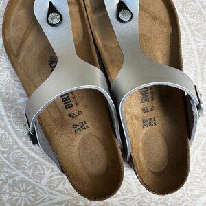 Women's NEW Birkenstock Gizeh Birko-Flor in Metallic Silver Size 39