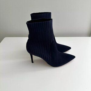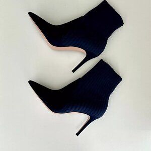 Women's NEW GIANVITO ROSSI Navy Suede Stretch Ribbed Ankle Booties Size 8.5