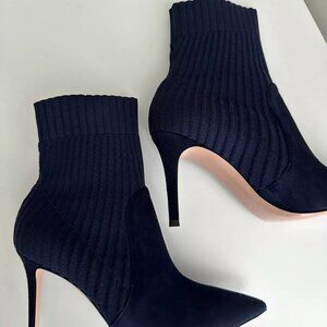 Women's Designer NEW GIANVITO ROSSI Navy Suede Stretch Ribbed Ankle Booties!
