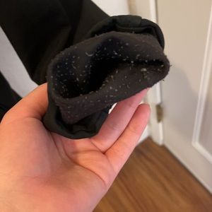 There is some polling on the cuffs. Hard exterior shell to protect from wind and rain. Does not have a hood.