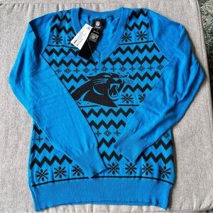 Women's NFL Carolina Panthers Team Logo Ugly Holiday V-Neck Sweater, Large