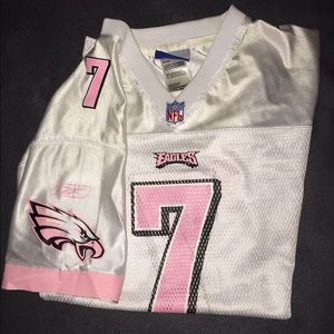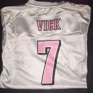 You are looking at an EUC Women's Philadelphia Eagles jersey in a size XL. This is an authentic Reebok jersey with the NFL logo both on the outside front, and on the inside tag. This Jersey is a light mesh material and has the Eagles logo on the sleeve with Vick's name and # on the back. This is a great throwback for any lady to rock! It is an XL, but could easily fit someone who is normally a Medium, comfortably. If you have any questions feel free to ask! Thanks! 😎