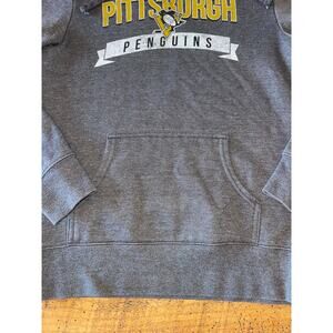 This gray Penguins hoodie is in excellent pre-loved condition! This is an official licensed NHL product. This Penguins hoodie is a size small, but it would probably fit an XS and even a kids size large depending on how you want it to fit. All measurements are in the photos.