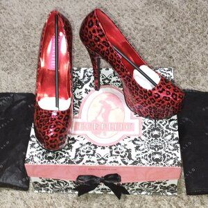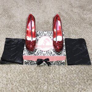 Brand NIB Bordello Stiletto's Red & Black Cheetah design. Size US 8. NIB (No price on the box).