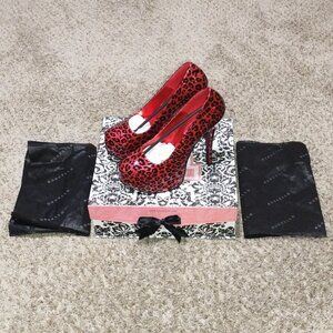 Women's NIB Bordello Red/Black cheetah Stiletto's Size 8 NEW/Great for Halloween