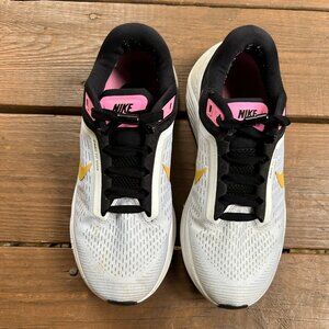 Women's NIKE Air Zoom Structure 24, White, Black, Gold, Pink 7-7.5