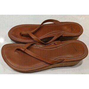 Women's NIKE Brown Leather Wedge Heel Flip-Flop Summer Beachy Sandals SZ 9