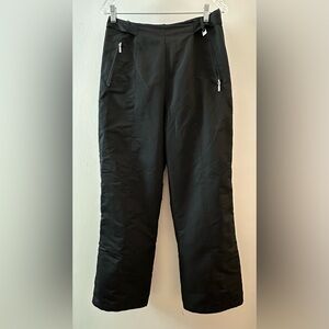 Stylish women’s NILS lightly thermolined ski or snowboard pants. Has elastic on liners underneath. Includes snaps on waistband to make adjustable. Has zipper pockets. Very comfortable to wear. Gently worn and no signs of wear. High quality ski pant.