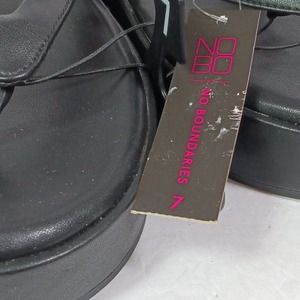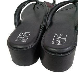 Women's NOBO' Black Wedge Faux Leather, memory foam Flip Flop Shoes, Size 7