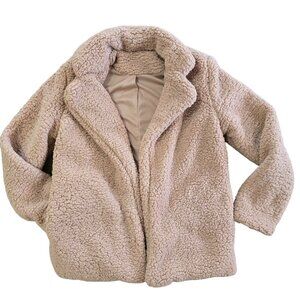 Womens NWOT Beige Sherpa Fleece open front Jacket oversized warm size small