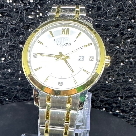 Women's (NWOT) Bulova Two-Tone Silver & Gold with Etched face, Diamonds, & Date