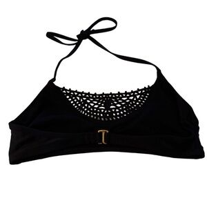 Women’s NWOT Xhiliration Black Halter Bikini Top with Crochet Detail, Medium