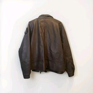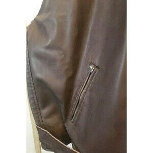 This NWT Brand New Women's Brown Faux Leather Oversized Zip Up Moto Biker Jacket by Wild Fable is a stylish and versatile addition