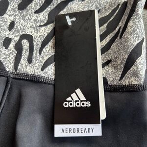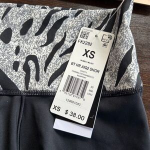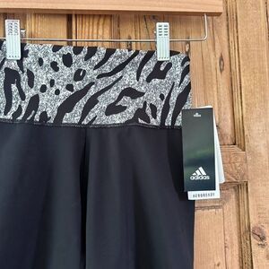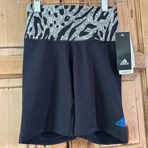 Women's NWT Adidas XS Black Training Shorts Biker Shorts Leopard Trim