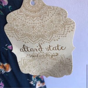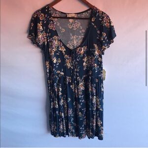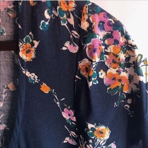 Navy Blue with Orange Purple Punk White and Green Flowers Short Sleeve Loose Fit Size Small