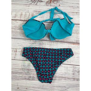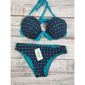 Women's NWT Barbara Bettoni Blue Pink and Black Bikini sz Small f