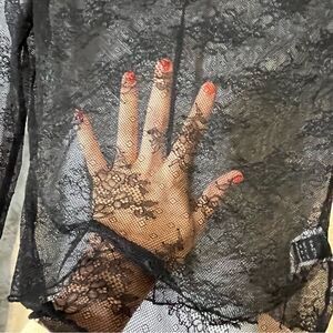 Women's NWT Black Lace Semi Sheer Long Sleeve Top