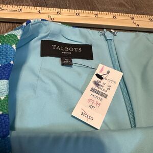 Womens NWT Blue Green Polka Dot TALBOTS Lined Stretch Below Knee Skirt 4 Petite
