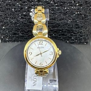 Women's (NWT) Bulova w/Mother-of Pearl Face, Gold Bezel, and Gold Chain Bracelet