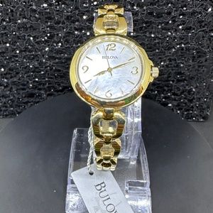 Women's NWT Bulova w/Mother-of-Pearl Face & Gold Bezel w/Gold Chain Bracelet