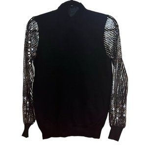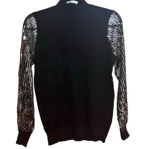 Women's NWT Catherine Malandrino Sequined Sheer Sleeve Mock Turtleneck Sweater S