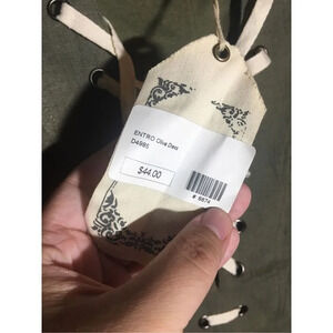 Womens NWT Entro Dress Olive Green White Lace Detailing Boho Spring Beachy
