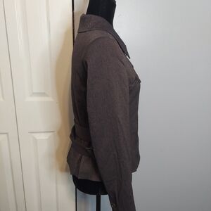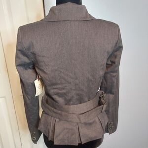 Women's NWT FYLO By. NYLON Dark Grey Herringbone Belted Stretch Jacket Blazer