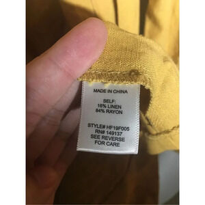 Measurements: Chest is 22 inches. Armpit to bottom hem is 16 inches. Material is 84% rayon and 16% linen.