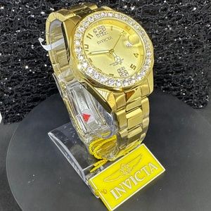 Women's (NWT) Invicta Watch w/a 18k Gold Face Showing the Date & a Crystal Bezel