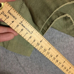 Measurements: Waist is 30 inches. Inseam is 3.5 inches. Material is 80% cotton and 20% linen.