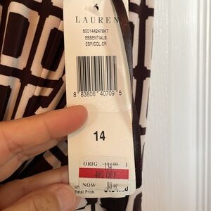 Women’s NWT Lauren Ralph Lauren Sz 14 dress sleeveless brown white square design