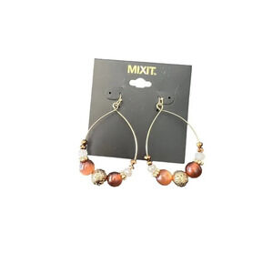 Women's NWT Mix It Earrings Gold Tone Beaded Dangle Drop Hoop Earthtone Boho