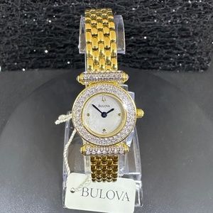 Women's (NWT) Mother-of-Pearl Face w/Crystal Bezel on a Gold Watch