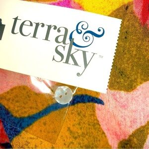 Women’s NWT Terra & Sky Pink and Yellow Boho Ruffled shoulder Blouse size 4XL New With Tags